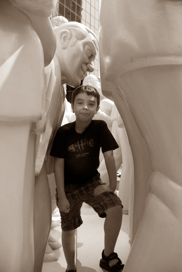 This holiday Monday, we took care of Madelaine, Erika and Joshua. With our son Diego, we went on a walking visit of downtown Montreal, ending up in front of The illuminated crowd by sculptor Raymond Mason. I asked the children to play around and through the sculpture. It's always a fun challenge to take good portraits of kids. Although some of the pix look "serious", we all had a jolly good time.